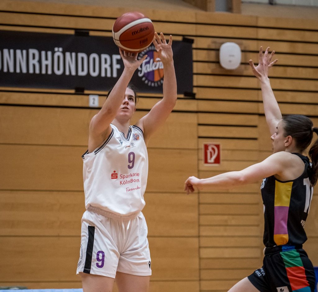 Mit dem Vorsatz weiter um jeden Ball zu kämpfen, kamen die Gastgeberinnen aus der Kabine. Lia Hilgenfeld sorgte an der Freiwurflinie für den 44:51-Anschluss, doch Küppers traf auf der anderen Seite aus der Distanz, was den Talents erneut den Atem nahm. Weitere Dreier von Knorr und Jette Krause ließen die Talents sogar mit 19 Zählern in Rückstand geraten (44:63, 27.). Auf BonnRhöndorfer Seite feierte die erst 16jährige Linda Thimm eine vielversprechende Zweitliga-Premiere und war mit mutigem Spiel daran beteiligt, dass es im vierten Viertel doch noch einmal etwas enger wurde. Zwei Korbleger der WNBL-Spielerin sorgten für den Anschluss. Als Hanna Fante erneut in der Ecke freigespielt wurde und zum zweiten Mal „for three“ vollstreckte, waren die Talents für wenige Sekunden wieder im Match (63:69). Der Chemnitzer Bock ließ sich aber nicht umstoßen, natürlich waren die beiden Asse Stroberg und Küppers daran beteiligt, dass die Chemcats die Begegnung nun humorlos für sich entschieden (65:78, 38.). Julijana Blazics vierter Drei-Punkt-Treffer war nur noch Ergebniskosmetik.