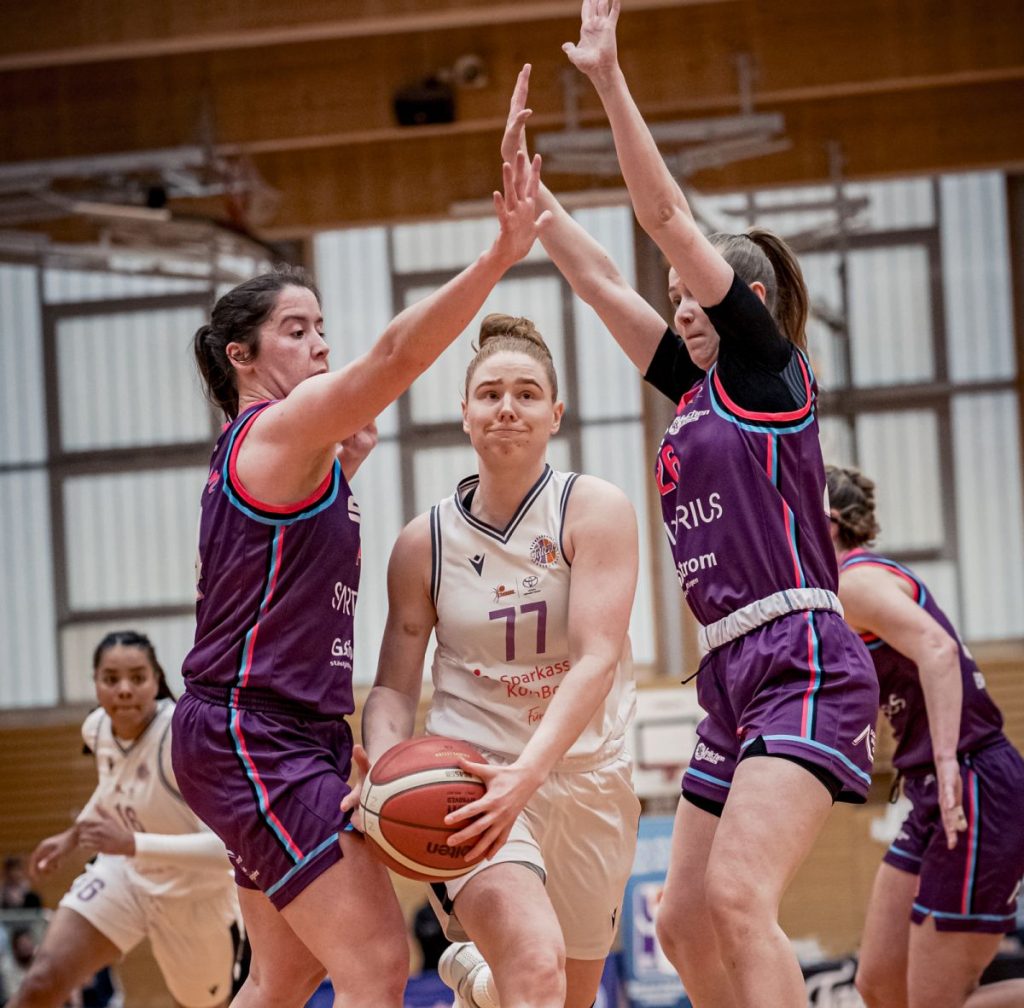 Hallensprecher Mirko Feld trieb die Besucher nach vorne und Göttingen zeigte Wirkung. Sechs Punkte in Folge für die Talents und Gästecoach Ruzica Dzankic griff zum Timeout (57:50, 32.). Die Reaktion der Veilchen Ladies ließ jedoch weiter auf sich warten. Auf der anderen Seite trafen Johanna Huppertz und Lea Wolff wichtige Würfe zur zweistelligen Führung (64:54, 36.). Göttingen antwortete und verkürzte auf 69:64 (38.). Auftritt Lia Hilgenfeld: Ihre neun Punkte in den letzten drei Minuten erstickten alle Comeback-Bemühungen der Gäste im Keim. Ana Faustinos Dreier zum 74:67-Endstand war nur noch Ergebniskosmetik. Der Erfolg der Talents war angesichts von 23 Zählern im Schlussviertel ohne Zweifel verdient.